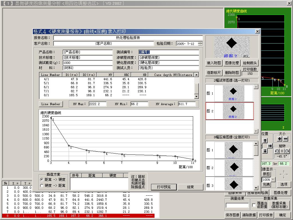 本軟件提供了“人工測量”和“自動(dòng)測量”兩種工作方法來測量硬度值,同時(shí)可保存檢驗(yàn)過程中的圖文信息,可連續(xù)采集并分析多張圖像。