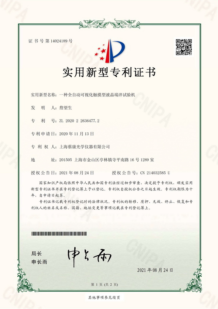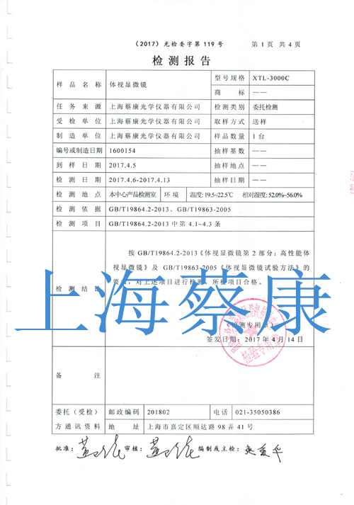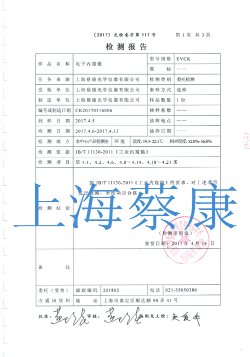 工業(yè)內窺鏡國家光學檢驗中心檢測證書
