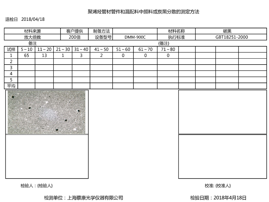 管材炭黑檢測(cè)分析軟件,符合國家標(biāo)準(zhǔn)-GB/T 18251-2000,主要功能模塊:1、自動(dòng)分析 2、圖像處理 3、新建報(bào)告及打開報(bào)告 4、幾何測(cè)量功能 5、定倍打印 6、圖像合成。具有測(cè)量,疊加比例尺,自動(dòng)評(píng)級(jí)功能,符合國標(biāo)的造粒炭黑粒子尺寸分布及粒徑的測(cè)定。 |